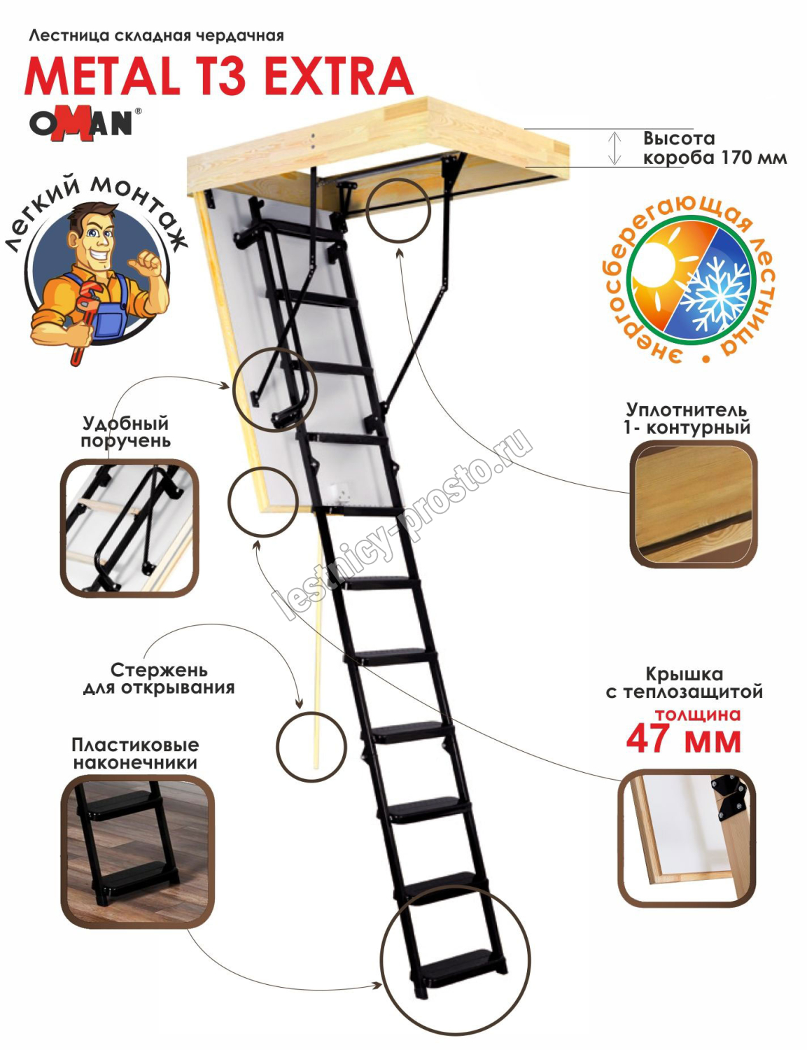 Лестница OMAN Metal T3 EXTRA 55×110 см, h-280 см