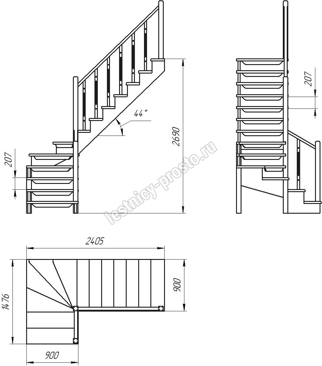 Высота лестницы 2690 мм