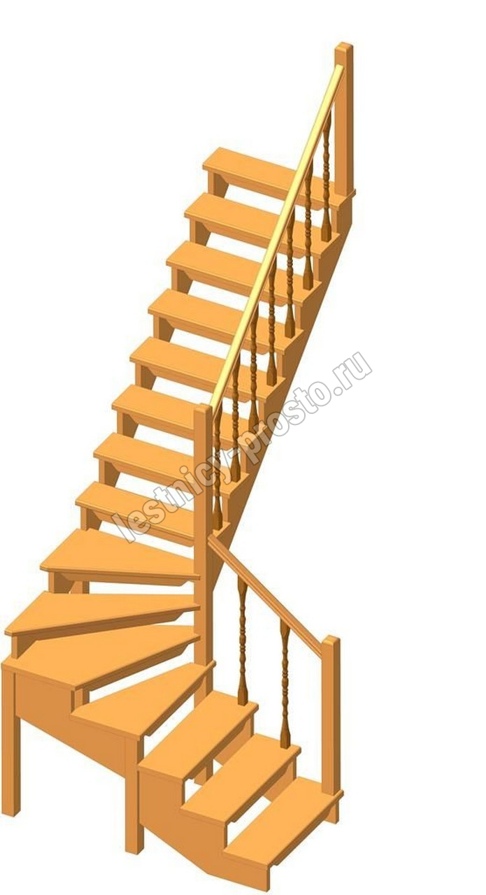 Деревянная межэтажная лестница ЛЕС-09 3105 проем 2580-900, Лиственница