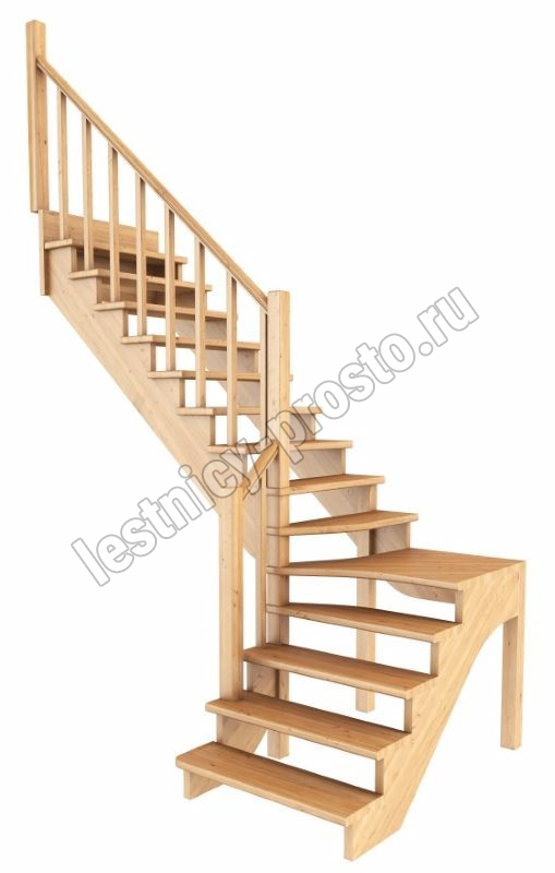 Ступени и поручень лестинцы изготовлены из дуба, остальные элементы из сосны. Возможно изготовление данной модели полностью из дуба. Базовый комплект включает в себя деревянные элементы лестницы и ограждения без какого-либо покрытия.