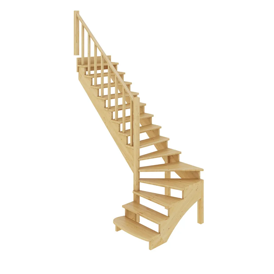 Базовый комплект включает в себя деревянные элементы лестницы и ограждения без какого-либо покрытия.
