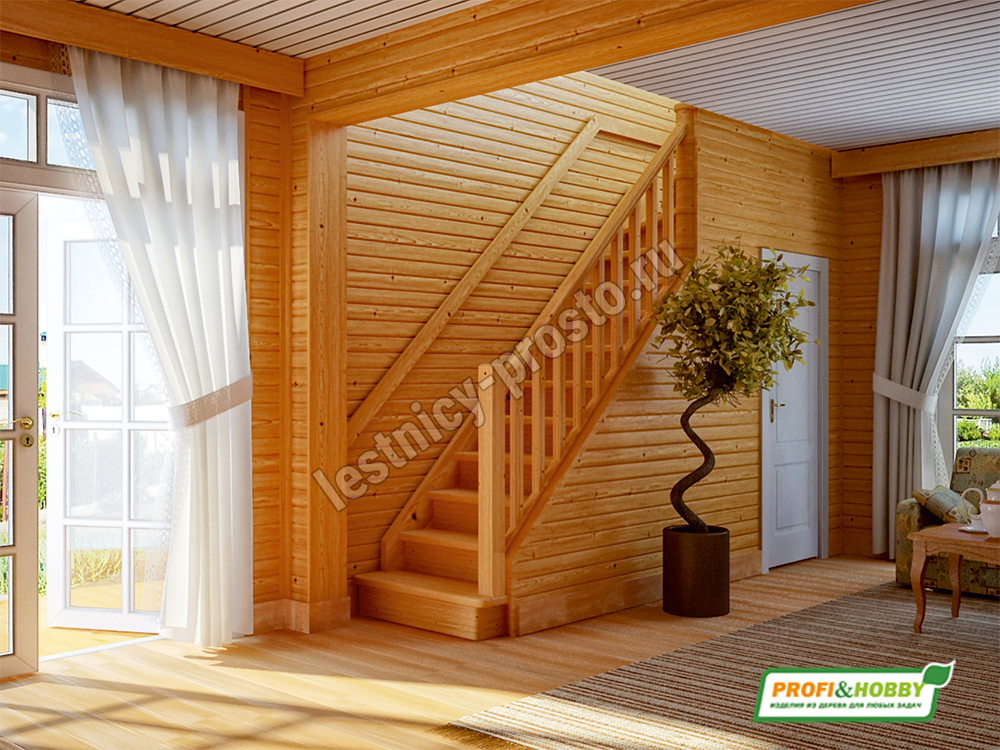 Ступени и поручень лестницы изготовлены из дуба, остальные элементы из сосны.