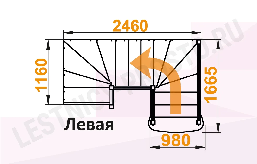 Схема лестницы К-009М/2 с поворотом налево