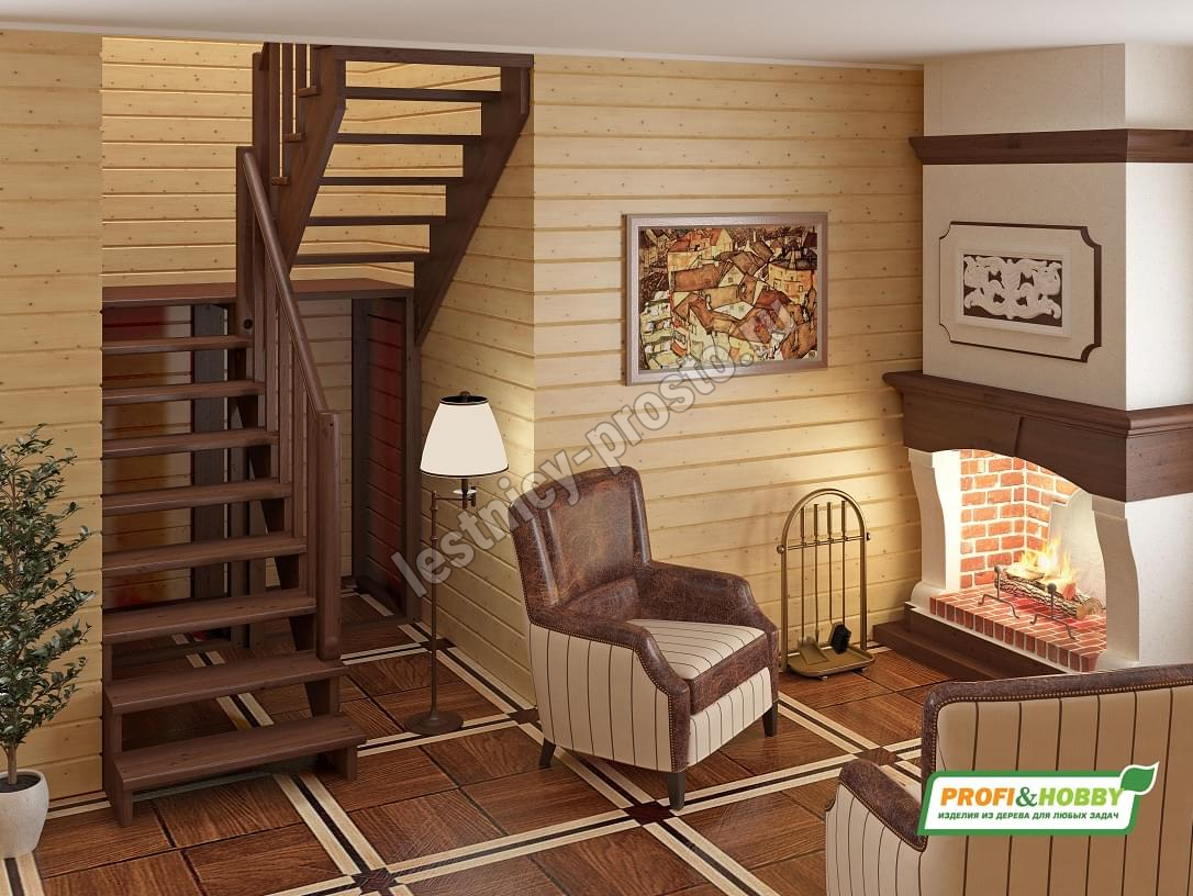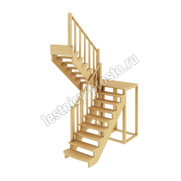 Материал: ясень (ступени и поручень), сосна (косоуры, столбы, балясины)