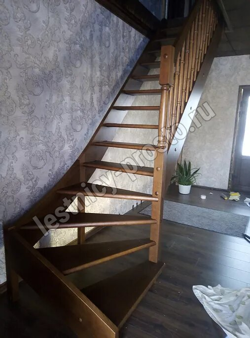 Лестница изготавливается из бессучковой сосны класса Экстра.
