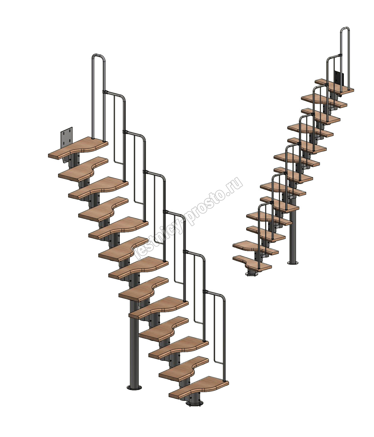 - Регулируемый по высоте в пределах 180-240 мм модуль. Большой диаметр и толщина металла деталей обеспечивают жесткость и прочность конструкции. Регулировка каждого модуля по высоте позволяет легко приспособить лестницу под ваше помещение.