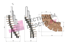 | Лестница Prosto Urban Black гусиный шаг 600 мм, h216-312 см (12 ступеней), бук |