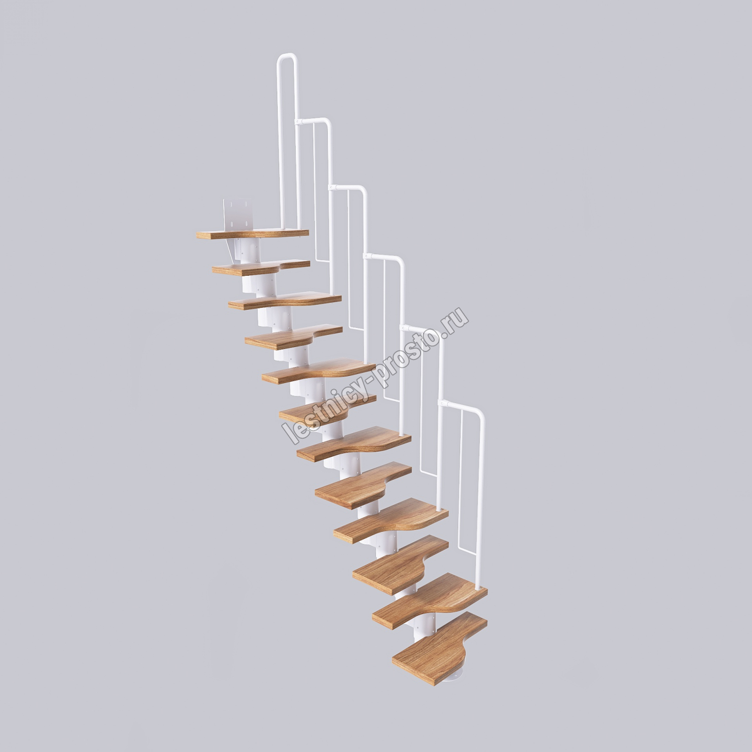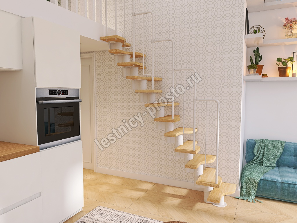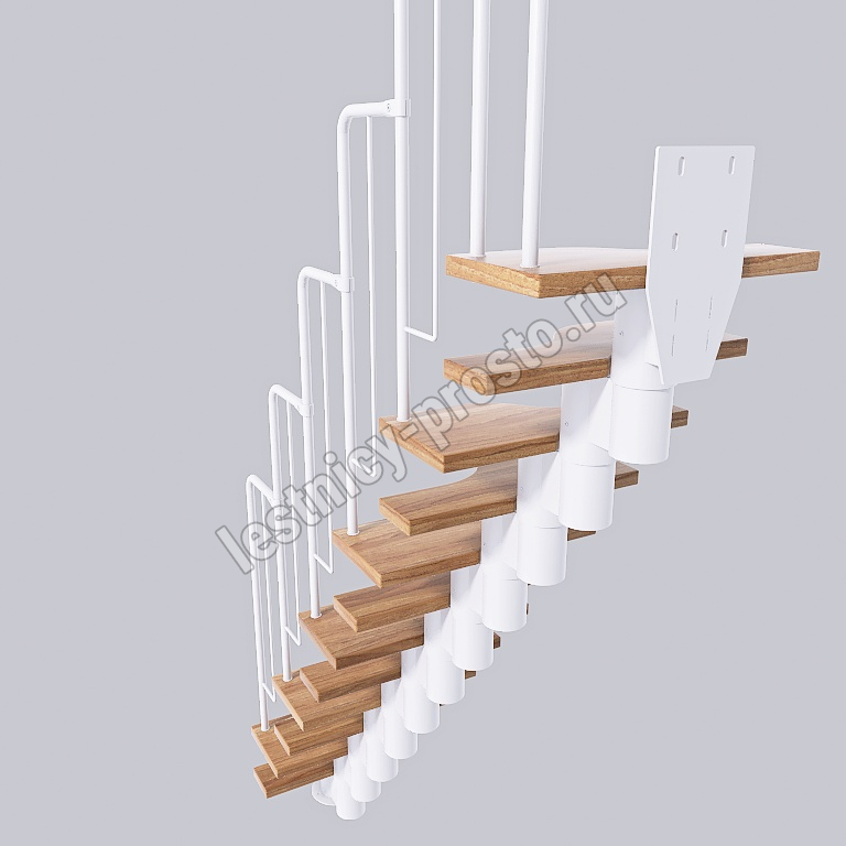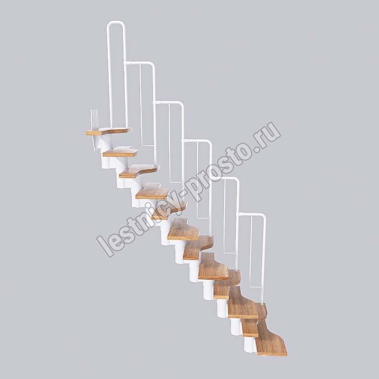 Лестница Prosto Urban White гусиный шаг 600 мм, h198-288 см (11 ступеней), дуб