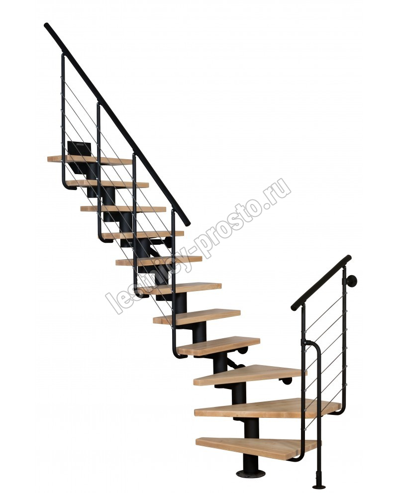 ATRIUM DIXI PLUS - это современная и удобная лестница, занимающая сравнительно мало места. В набор входят 11 конструктивных элементов и 11 ступеней из массивного лакированного дерева (8 прямых ступеней и 3 забежные ступени).