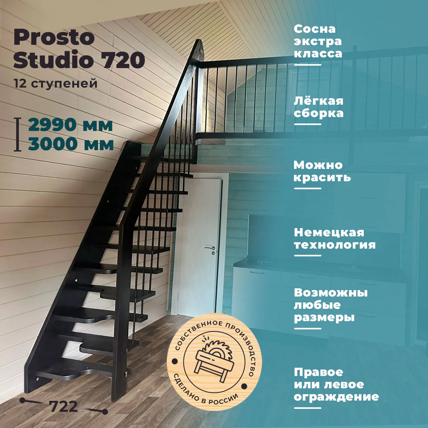 Модульная лестница Фаворит 225 2700-2820, Черный, Лиственница, Крашеная