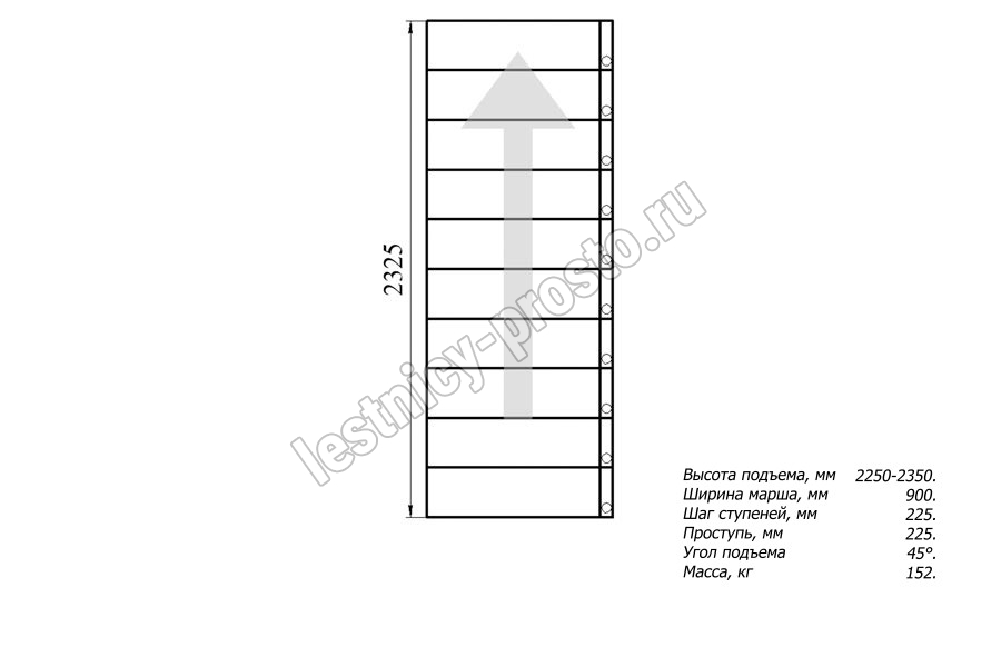 Модульная лестница Стандарт 2250-2350, Белый, Сосна, Нержавеющая сталь