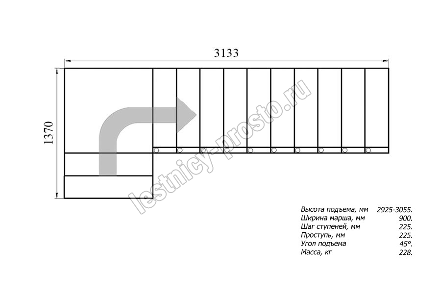 Модульная лестница Статус 225 2925-3055, Черный, Бук, Крашеная