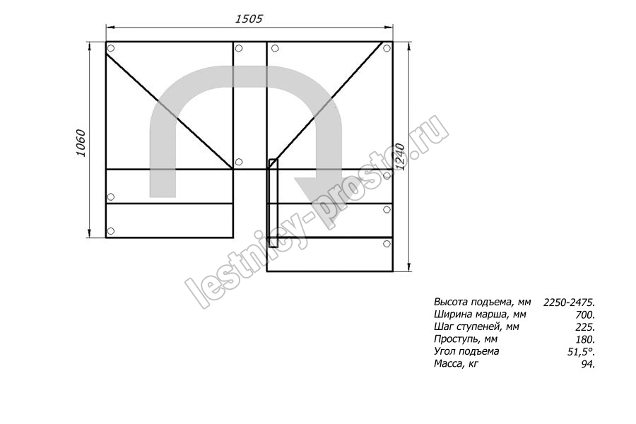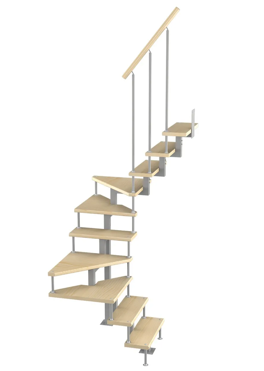 Модульная малогабаритная лестница Эксклюзив 2250-2475, Серый, Бук, Нержавеющая сталь