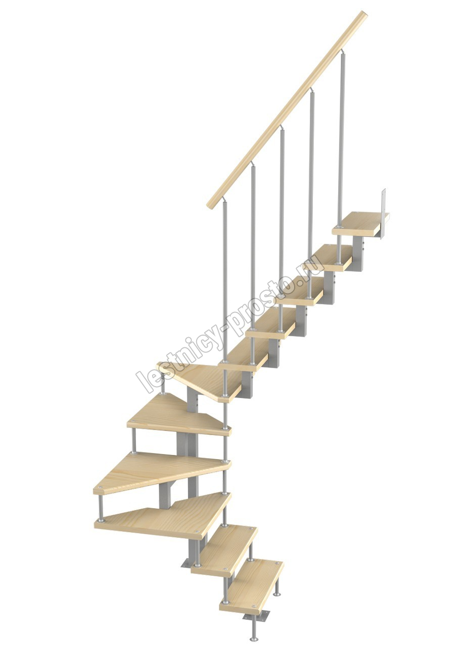 Модульная малогабаритная лестница Эксклюзив 2475-2700, Серый, Сосна, Крашеная