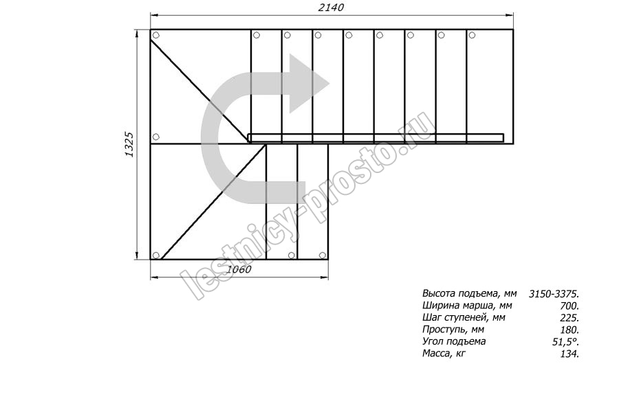 Модульная малогабаритная лестница Эксклюзив 3150-3375, Серый, Сосна, Крашеная