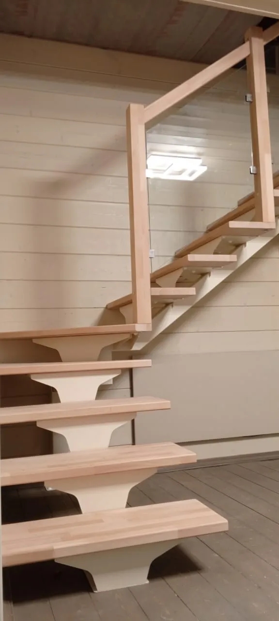 Ступени и поручень выполнены из срощенного бука категории АВ без покрытия.