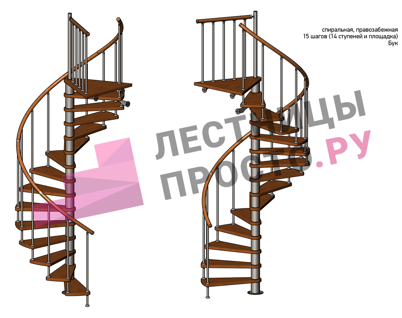 Правая, d=160см, 14 ступеней + площадка