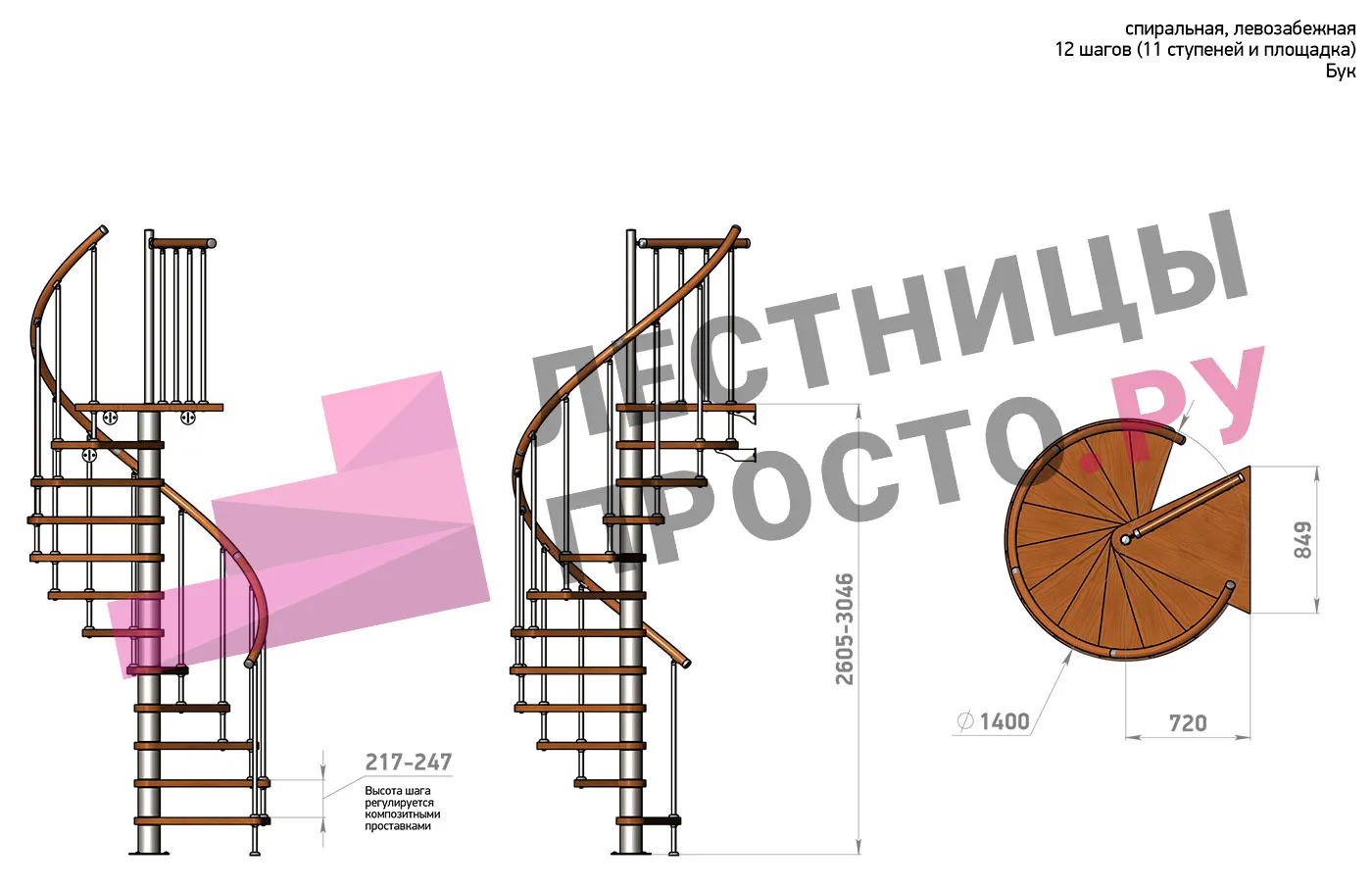 Экономит пространство. Высота ступеней регулируется с шагом 3 мм. в пределах 217-247 мм., благодаря чему, лестница прекрасно подгоняется под необходимую высоту.