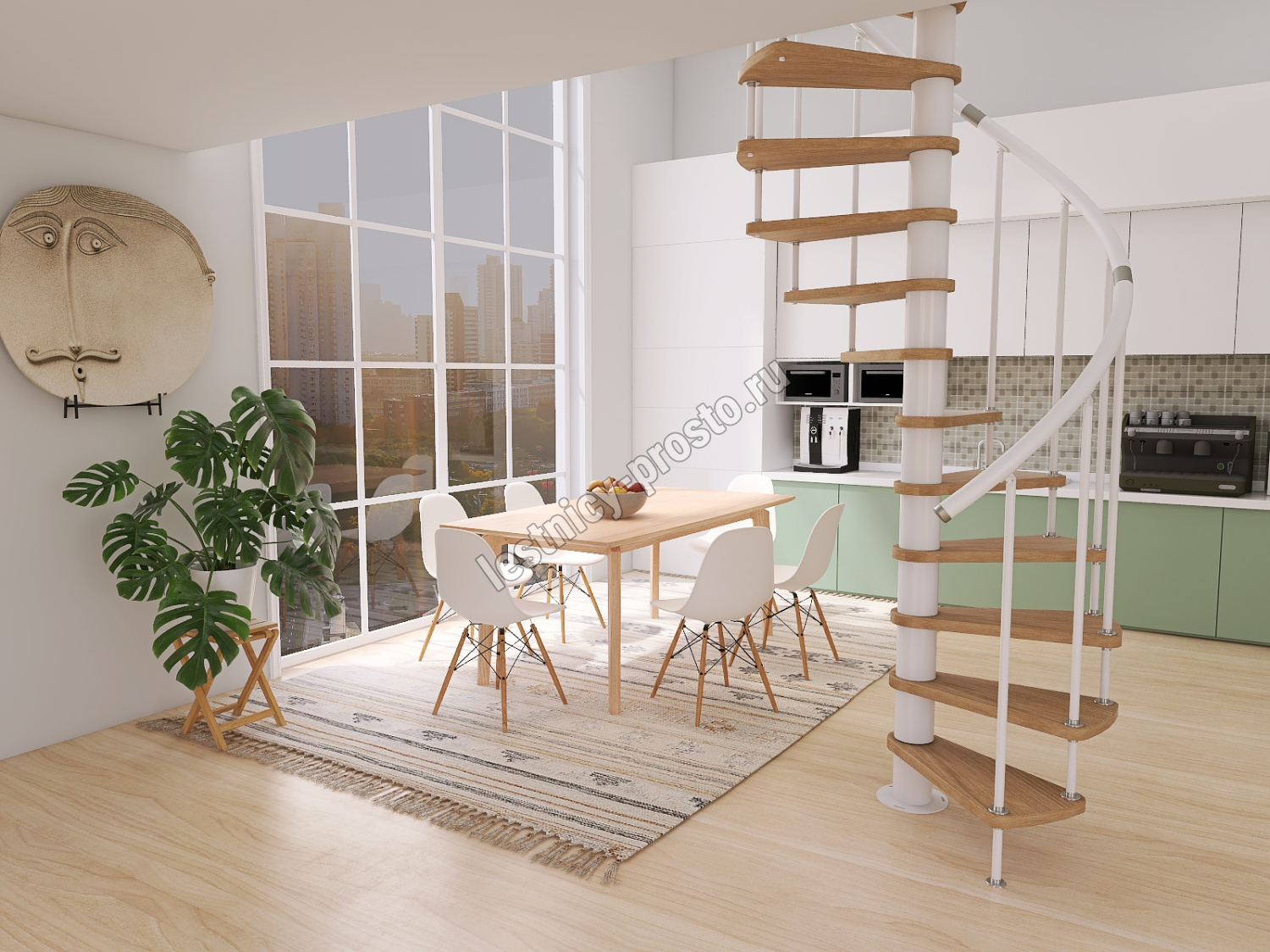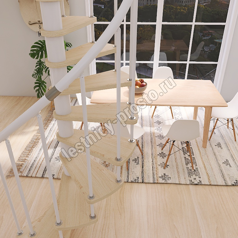 Экономит пространство. Высота ступеней регулируется с шагом 3 мм. в пределах 217-247 мм., благодаря чему, лестница прекрасно подгоняется под необходимую высоту.