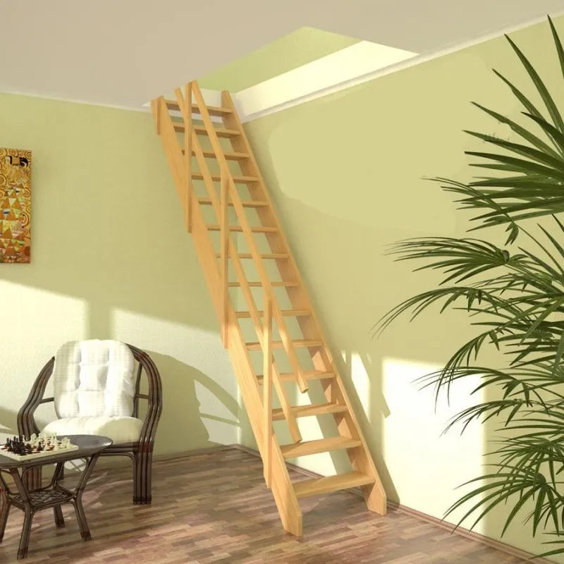 Компактная надёжная лестница. Ступени толщиной 30 мм, изготовлены из массива берёзы по технологии Multiplex, лакированные. Все металлические части оцинкованы, горячим способом и покрыты порошковой краской - черного цвета; Лестница имеет надёжную несущую стальную конструкцию.