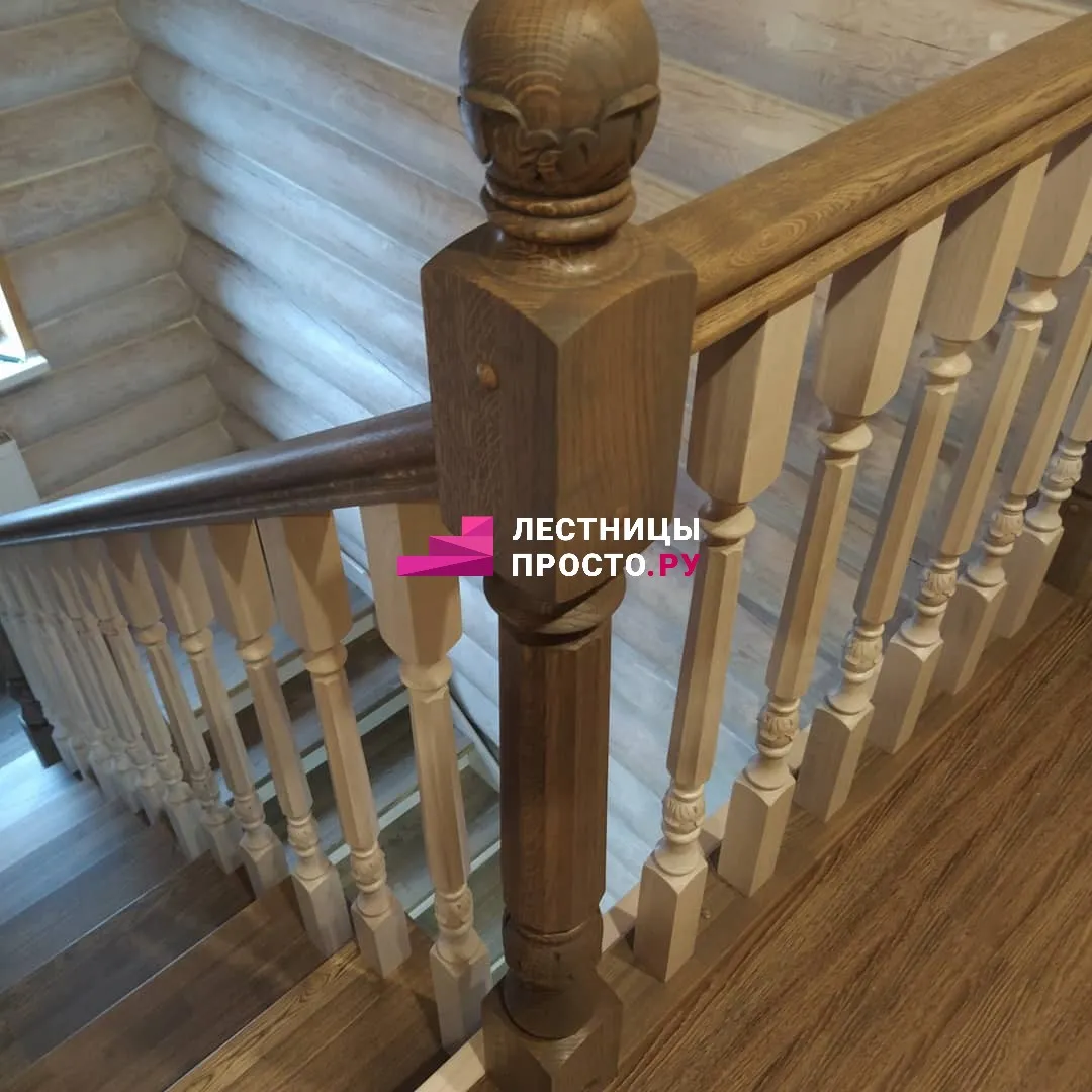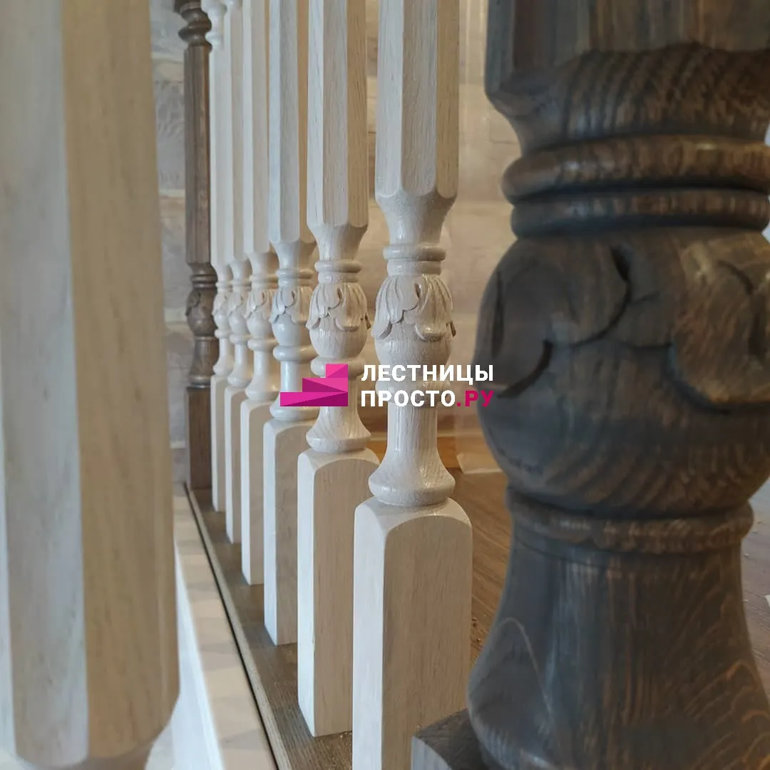 Лестница из ясеня с фигурными балясинами в частном доме по индивидуальному проекту LP-1-46