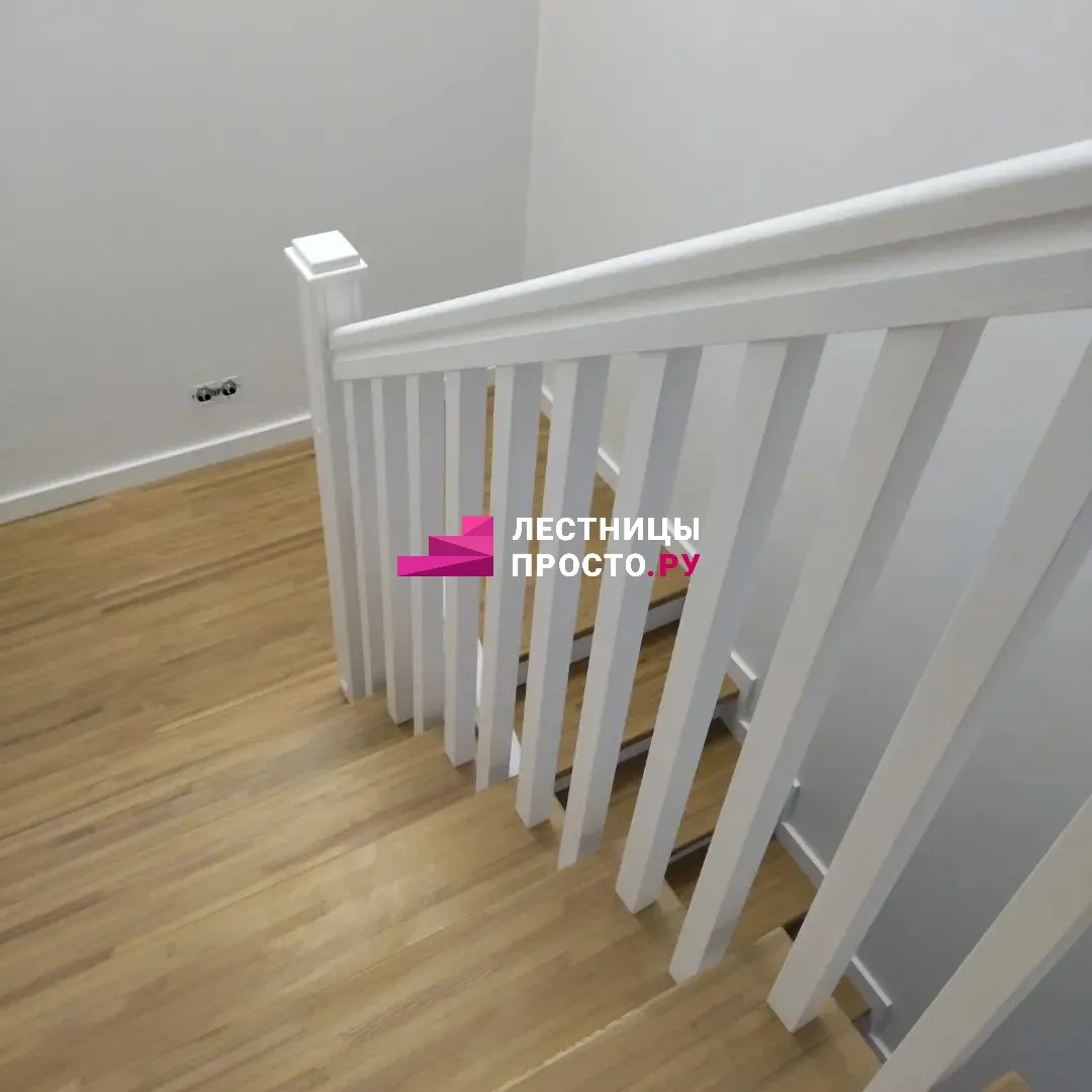 Подступенники, фальш-косоуры, сапожки (пристенной плинтус) декорированы МДФ.